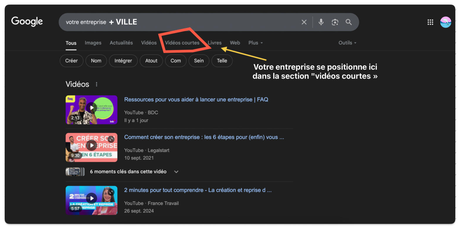 👉 Google affiche des vidéos en premier.Et si tu veux être là, en haut, il te faut :